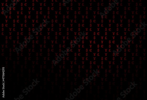 Dark red vector background with EUR, USD, GBP, JPY.