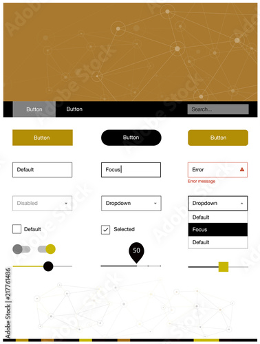 Dark Red, Yellow vector ui ux kit in triangular style with circles.