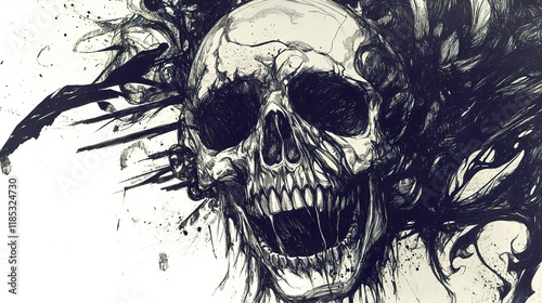 Dark Skull: Monochrome Ink Drawing, Gothic Art