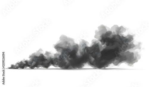 Dark Smoke Plume Rolling Across White Background
