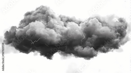 Dark storm clouds with lightning isolated on white and lightning, isolated on transparent background. Clouded. Illustration