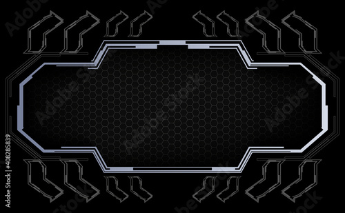 Dark technology background with futuristic frame.