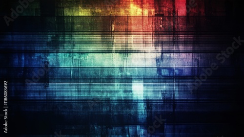 Dark textured background with heavy analog noise overlay, featuring irregular scan lines and static interference patterns. VHS tracking errors create horizontal bands of distortion, while random