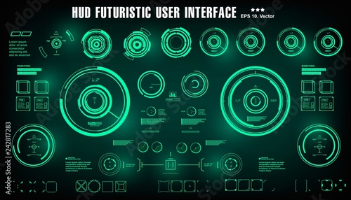 Dashboard display virtual reality technology screen. HUD futuristic green user interface, target