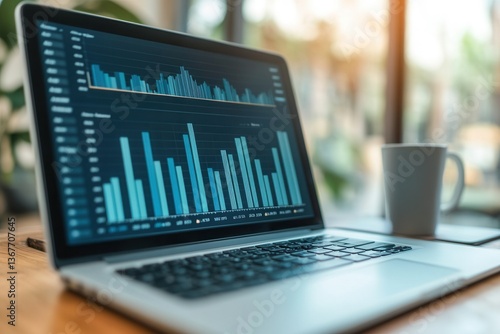 Data analysis concept with a bar graph on a laptop, emphasizing technology and statistics