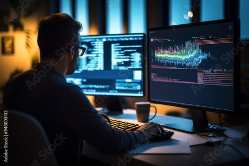 Data analyst working on computer.