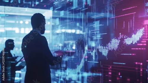 Data Analysts Examining Global Market Trends on Interactive Screen