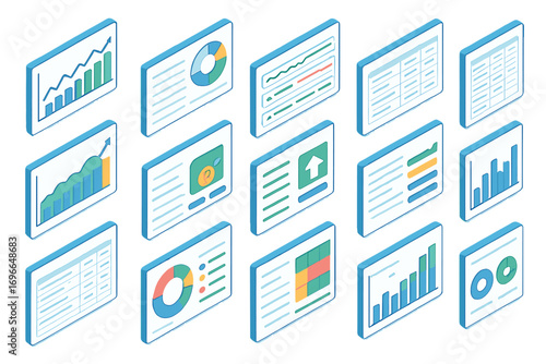 Data analytics 3d icon set. charts, graphs, and statistics visualizations collection