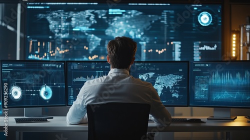 Data analytics and insights driven by big data and artificial intelligence technologies A data scientist works with complex information analyzed by AI for a business analytics dashboard