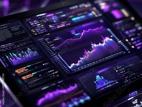 Data Analytics Dashboard with Graphs and Charts in Purple Tones
