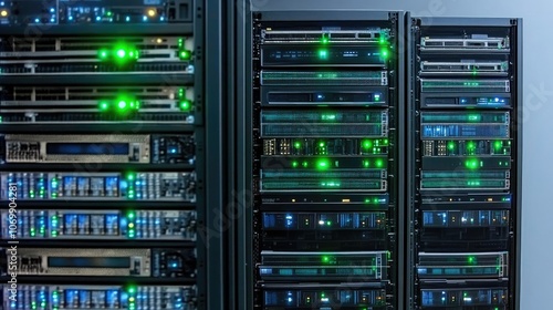 Data Center Filled With Operational Servers Displaying Green Lights Generative AI