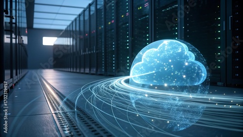 data center with glowing cloud symbolizing advanced technology