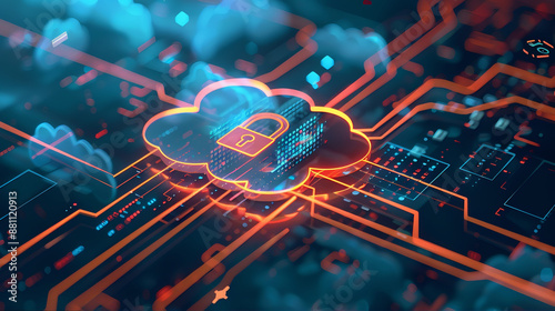 Data cloud computing digital technology network connections concept, coding data cloud concept with security lock.