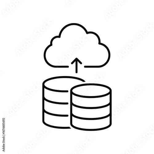 Data Cloud Upload: A minimalist illustration shows data being uploaded to the cloud, the stack representing information storage, and a simple arrow represents information transfer.