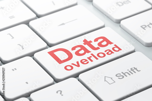 Data concept: computer keyboard with word Data Overload, selected focus on enter button background, 3D rendering
