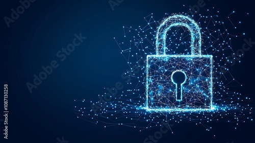 Data Encryption Concept with Glowing Lock and Abstract Algorithms