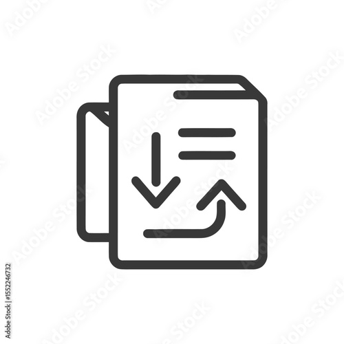 Data Flow Icon: Document with Arrows Illustrating Data Transfer and Transformation