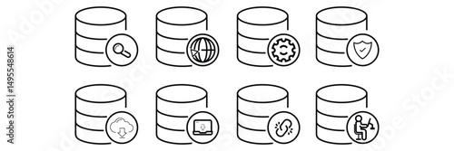 Data management system server cloud storage access protection download optimization internet icon set outline vector illustration collection.