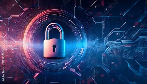 Data privacy laws visualized with locks and codes, digital background, 3D illustration, law restriction, regulations, enforcement.
