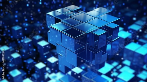 Data processing and retrieval. Big data and Ai core data concept image. Dark and light metallic blue block stacked and rising. Shallow depth of field, Generative AI