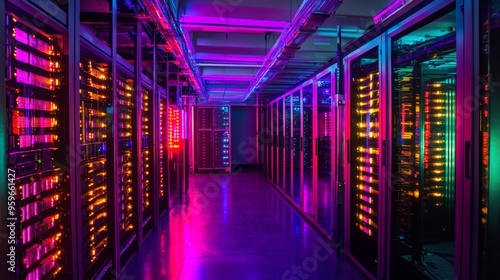 Data Protection in Neon: Glowing High-Tech Servers in Redundant Patterns
