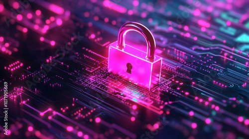 Data Protection: Laptop Screen Lock - Cybersecurity and Encryption Concept for Business Privacy and Security Background.