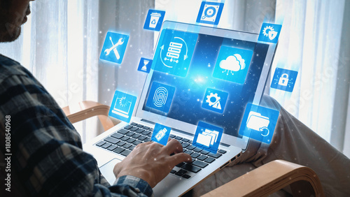 Data recovery icons show backup, data recovery process, and secure restoration. Data recovery ensures system reliability, data recovery protection, and information access. Gist