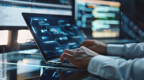Data science digital technology concept Computer science engineer programming on laptop at office data exchange system control and data management with Ai Business and Artificial intel : Generative AI
