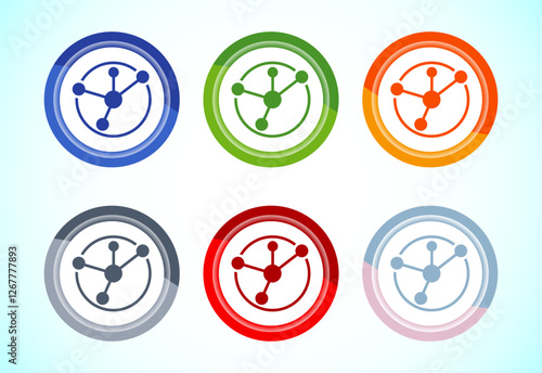 Data science icon design illustration. Big data, digital tech icon, 6 color button design set