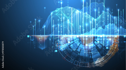 Data science. Scientific-technological background on the use of various technological elements. Combination of different styles. Hand drawn vector.