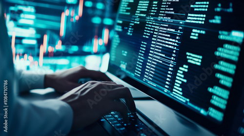 Data Scientist Analyzing Data on Computer with Interactive Table
