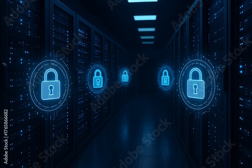 Data Security Concept in Server Room with Padlocks