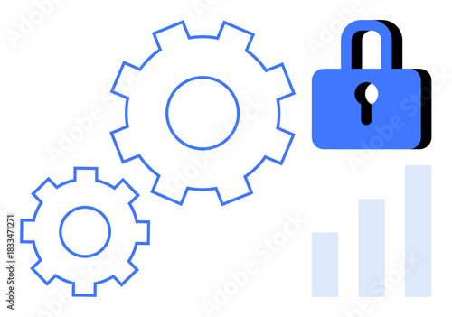 Data security. Illustration combining gears, secure lock, and data chart emphasizing data security. Data security for technology, cybersecurity, process optimization, analytics, and privacy