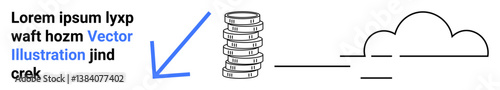 Data stack transitioning to cloud storage with arrow emphasizing movement. Ideal for IT, cloud computing, backup, data transfer, technology, modern workflow, simple landing page