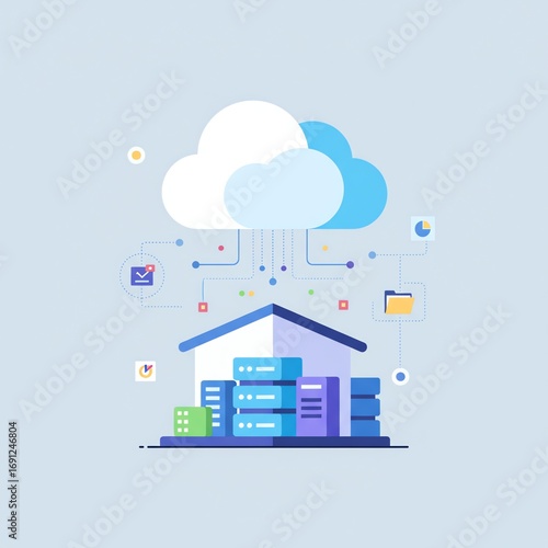 Data Storage with Cloud and House Icon Network, Servers, Connection and Technology Concept
