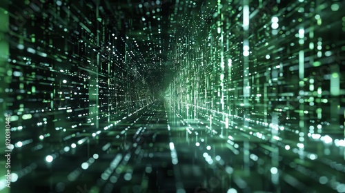 Data Stream Binary Code Cascades in a Hypnotic Luminous Flow