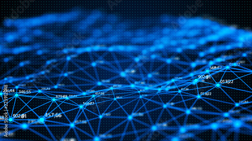 Data technology background. Abstract background. Connecting dots and lines on dark background. 3D rendering. 4k.