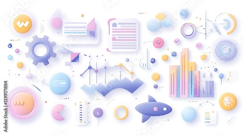 Data Visualization: Abstract 3D Infographic of Business Analytics, Growth Charts, and Technological Progress