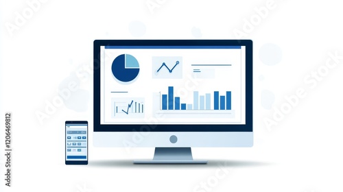 Data visualization, graphs on computer, phone, and tablet illustrating trends analysis