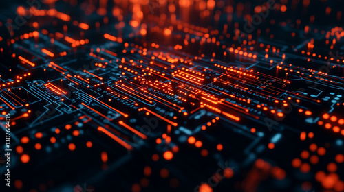 Data visualization of circuit patterns digital realm abstract art tech environment close-up viewpoint innovation concept