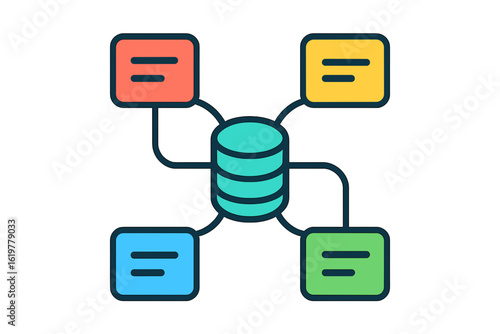 Data visualization with interconnected database and colored boxes data mapping diagram