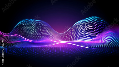 Data Wave Abstract Futuristic Digital Landscape With Dot Matrix and Neon Lights for Backgrounds