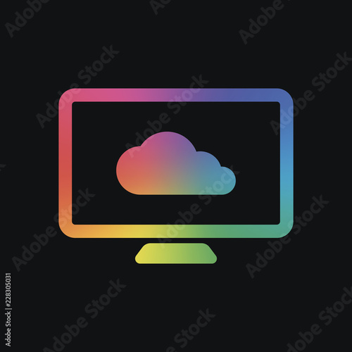 database, cloud technology, computer and cloud. simple icon. Rainbow color and dark background