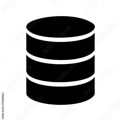 Database icon depicting a three layered storage system in black and white
