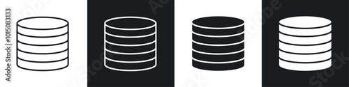 Database icon vector icon set black filled and outlined style.