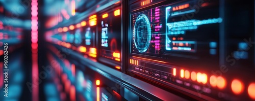 Database optimization, holographic interface, sleek futuristic workspace, glowing lights