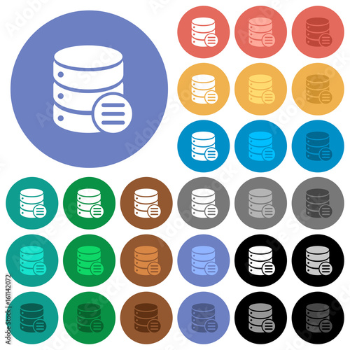 Database options round flat multi colored icons