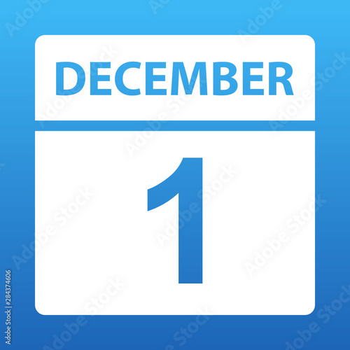 December 1. White calendar on a colored background. Day on the calendar. First of december. Vector illustration.