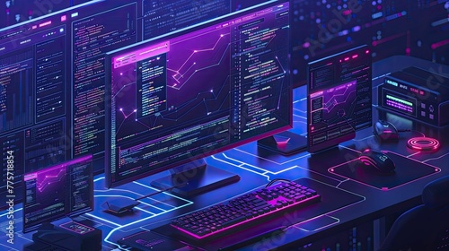 Decentralized application DApp development on a computer.