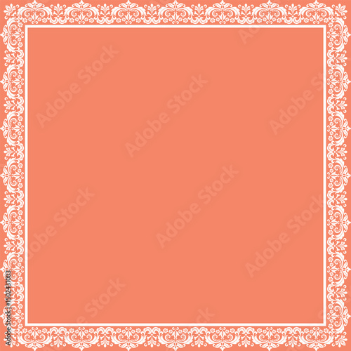 Decorative frame Elegant vector element for design in Eastern style, place for text. Floral pink and white border. Lace illustration for invitations and greeting cards
